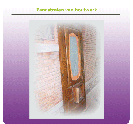 • Al uw houten meubels, trappen, deuren, enz. worden ontdaan van vroegere verf- , vernis- en boenwaslagen, evenals andere onreinheden. Door het gebruik van zand- of glasparels wordt de originele houtstructuur terug zichtbaar.